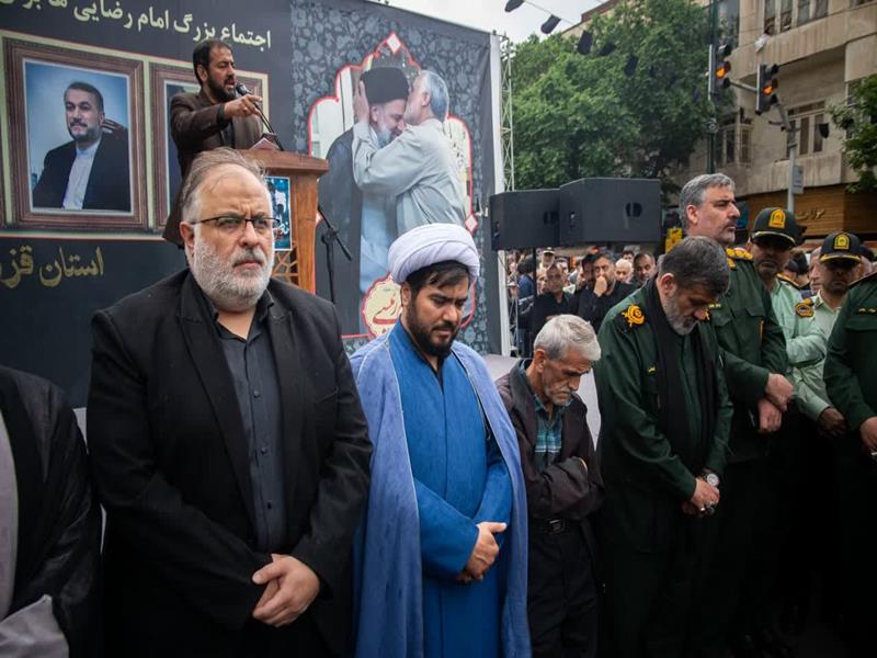 جتماع مردم سوگوار قزوین در پی شهادت خادم الرضا(ع) رئیس جمهور مردمی آیت الله رئیسی و همراهان شهیدش در میدان آزادی